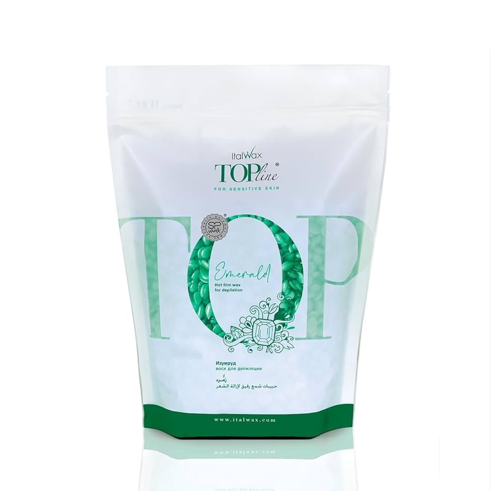 المنتج في الصورة هو شمع “إيتالواكس توب لاين إميرالد” (Italwax Top Line Emerald)، وهو شمع لإزالة الشعر.