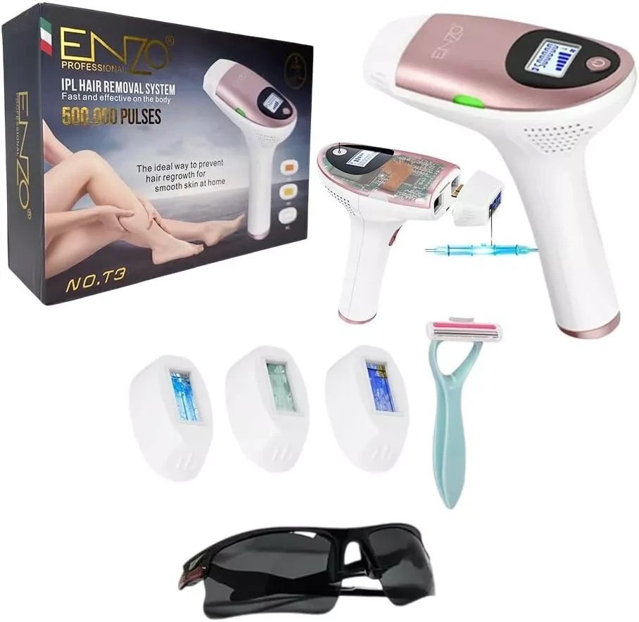 هذا هو جهاز إزالة الشعر بالليزر المنزلي الاحترافي Enzo T3 بتقنية IPL.