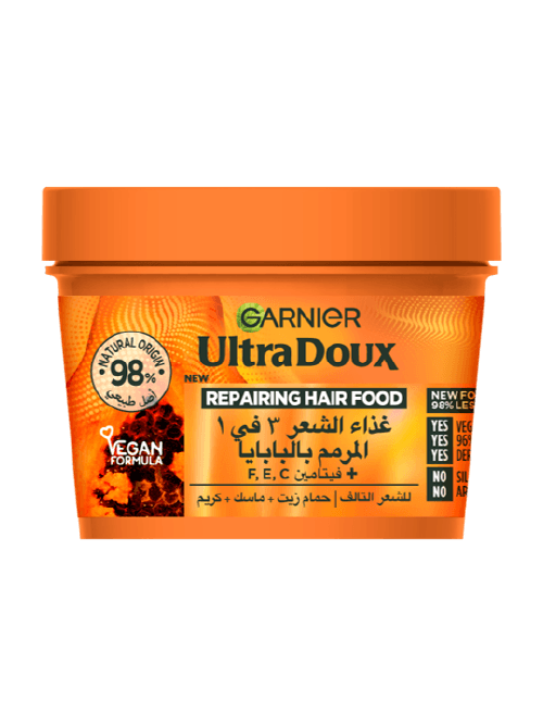 حمام زيتي+ماسك+كريم يترك على الشعر الترا دوكس غارنييه