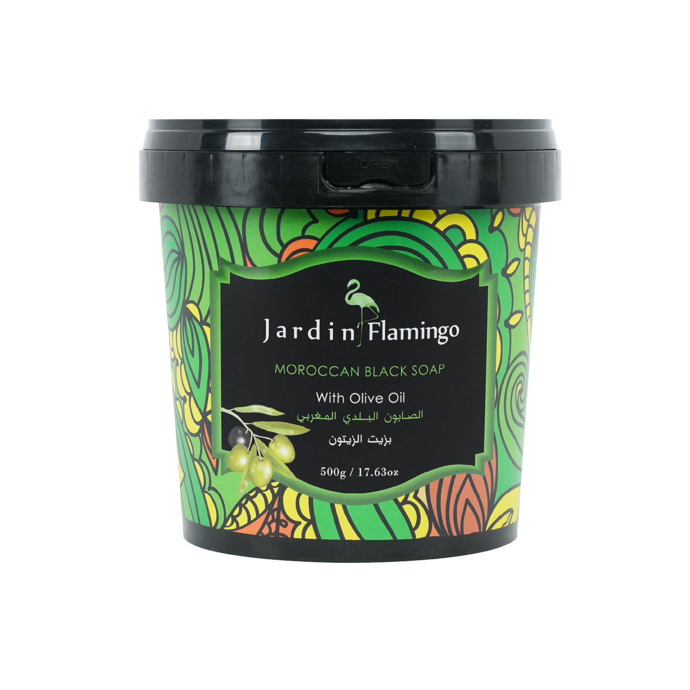 صابون “جاردن فلامنغو” المغربي الأسود بزيت الزيتون هو منتج للعناية بالبشرة يُستخدم في الحمام المغربي.