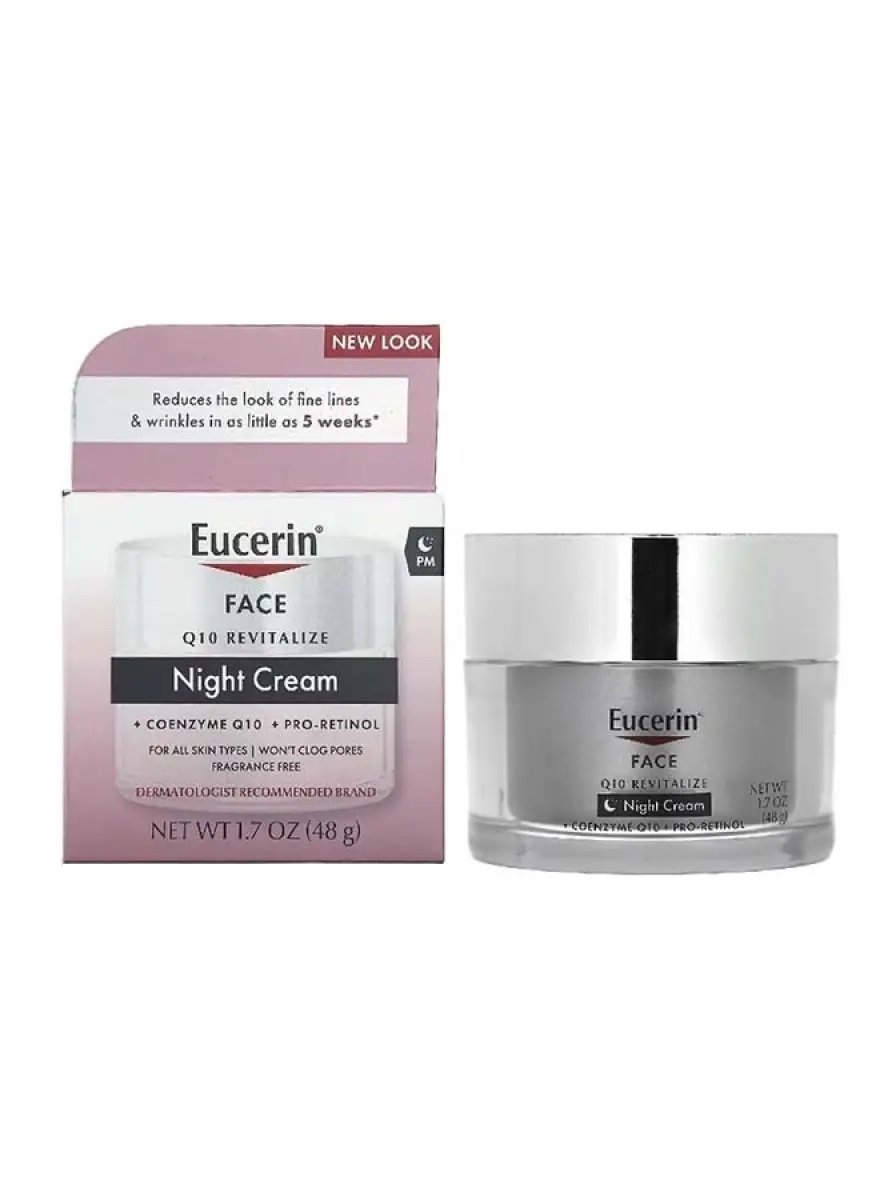 كريم الليل Eucerin Q10 Revitalize يغذي البشرة بعمق أثناء النوم لتقليل الخطوط الدقيقة والتجاعيد.