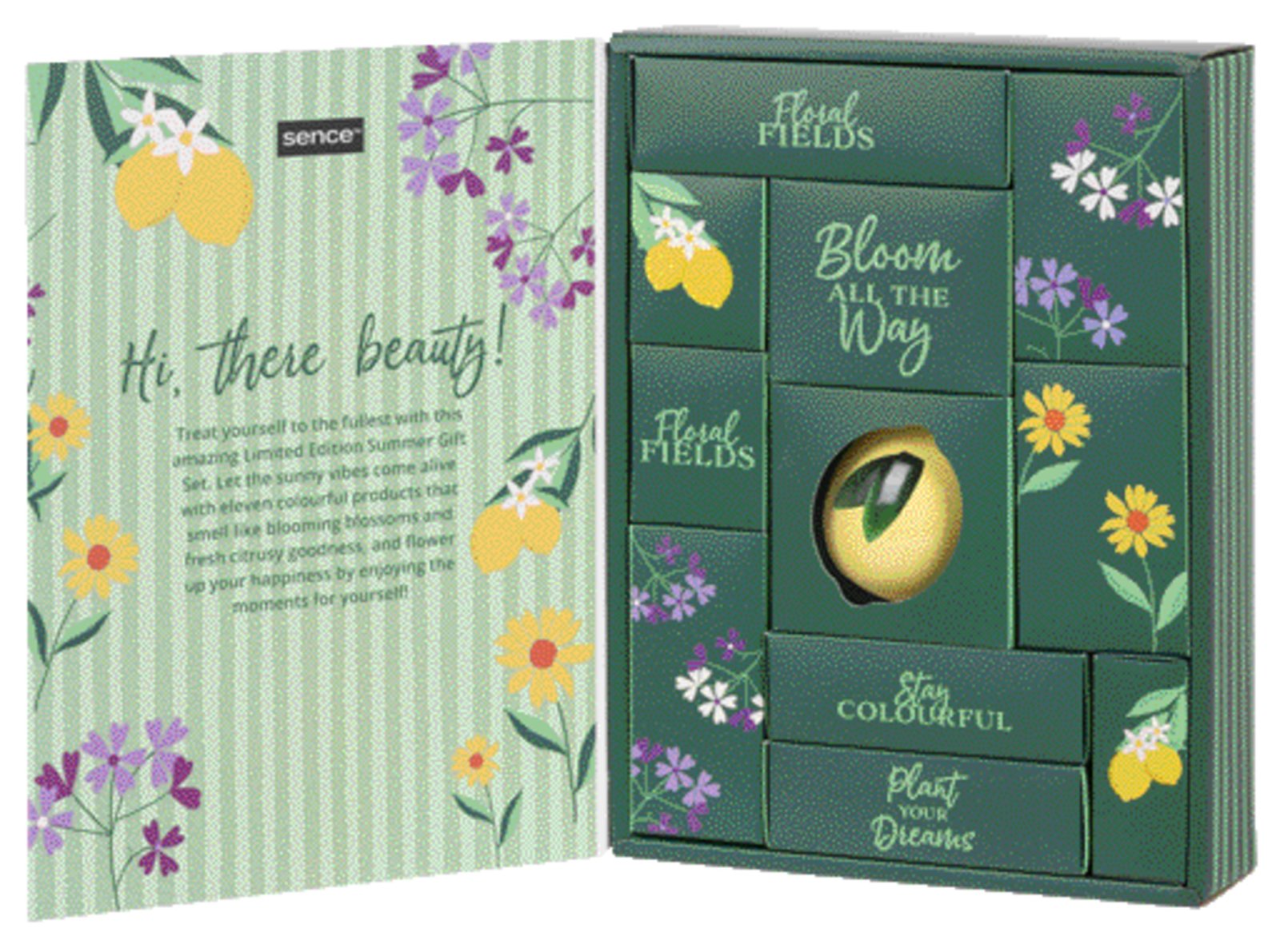 مجموعة هدايا “Bloom All The Way“ من Sence، وتحتوي على 11 هدية من منتجات العناية بالجسم والاسترخاء